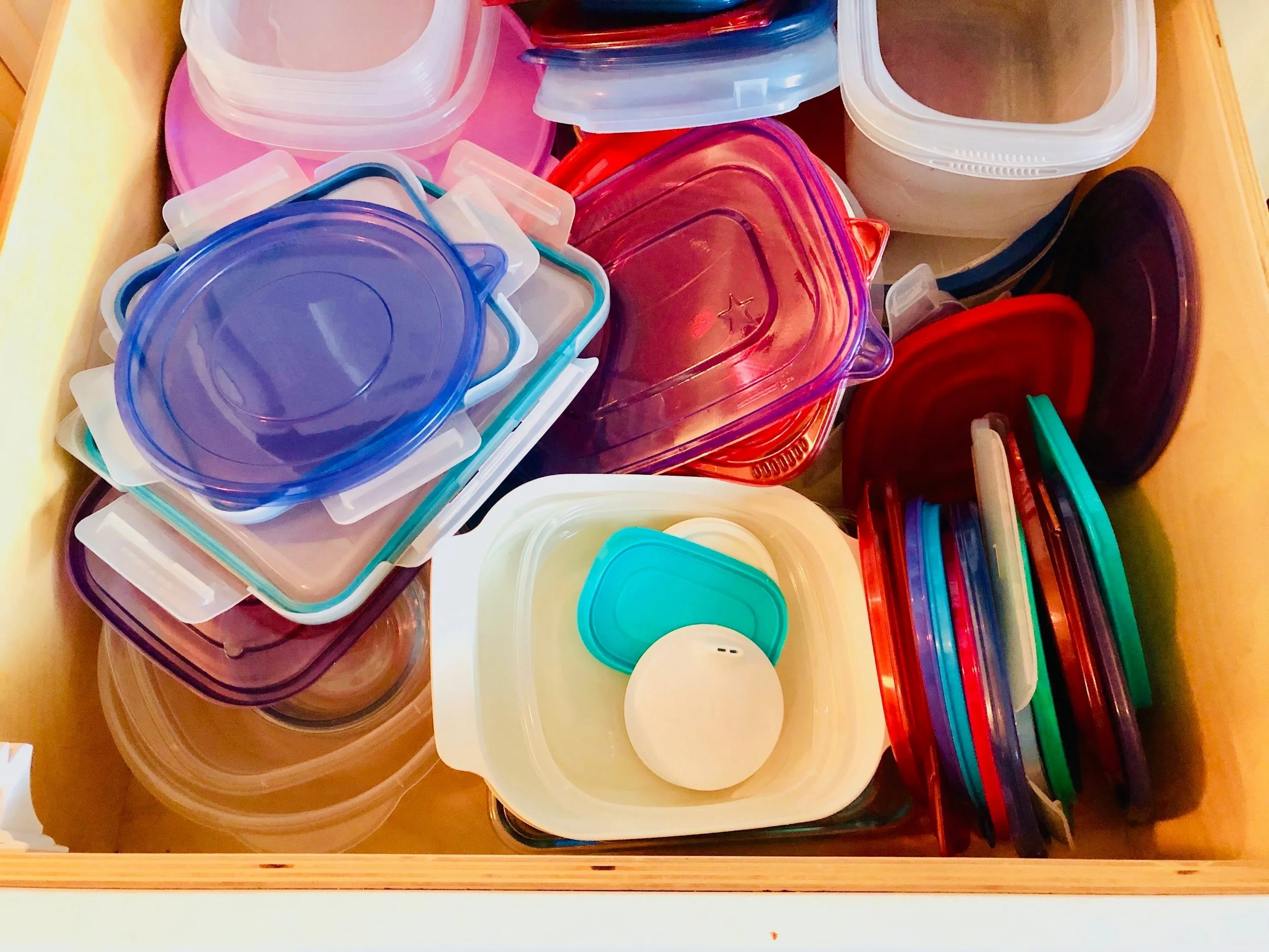 Wherever you store your Tupperware, Rubbermaid, Sterilite, generic food storage plastic or glass containers with lids, here are some tips to keep them easily tidied.