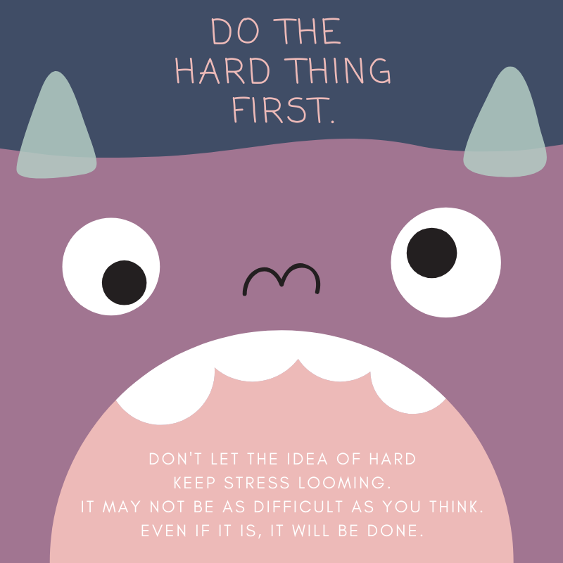 Years ago I created the image below. Little did I know that I would be continually learning this. I’m not a huge fan of doing things that are hard for me. (Helping you declutter and organize is easy for me so never you fear!) I keep choosing to do the hard things first and I keep growing to be able to do more and more things.